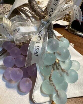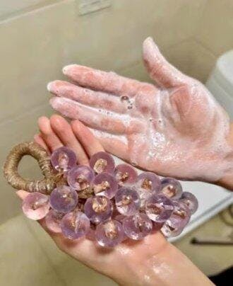 The actual product is stunning—each piece looks like a crystal grape, and it turns even more transparent when wet. The packaging is lovely too. This grape soap is just perfect for gifting.