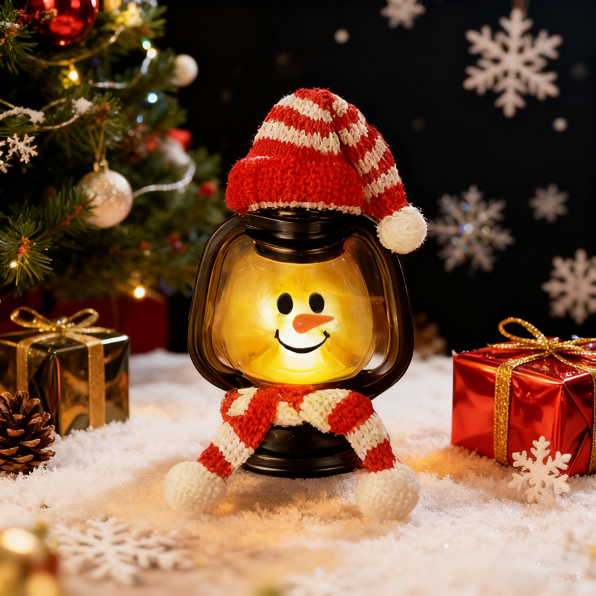 These adorable mini lanterns aren’t just lights—they’re dressed-up snowmen ready to melt hearts. With cute knit hats, cozy scarves, and a warm flickering glow, they instantly add festive vibes to your home, office, or holiday party. 🎁